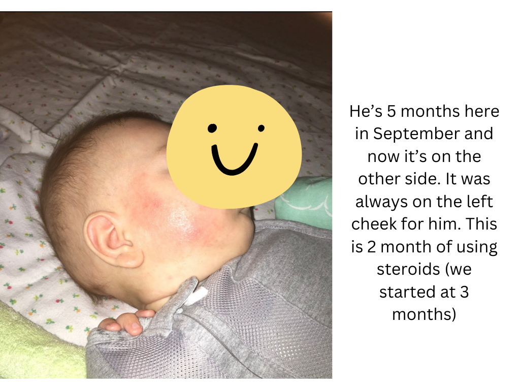 Doctors/dermatologists only prescribe steroids/antibiotic creams which are all bandaid solutions because the eczema keeps coming back. Oral doses of antibiotics won’t get rid of the eczema because it keeps coming back even after the third round and you’re just destroying your baby’s gut bacteria. These medical professionals never dealt with it and are not experts in it. They don’t understand. Stop putting all your hope into what the doctor/dermatologists, they’re just people who make mistakes and don’t genuinely know how to help you. I say all of this and may sound harsh but only because I lived through it. I took the doctors word and used the cream and used more creams and stronger creams. It only made it worse. It’s not a solution or cure, just a cream that makes you feel better about how your baby looks. The cream opens up pandoras box and creates more problems later. Take it from me. It was just a patch on his cheek that turned into everywhere into his body.
