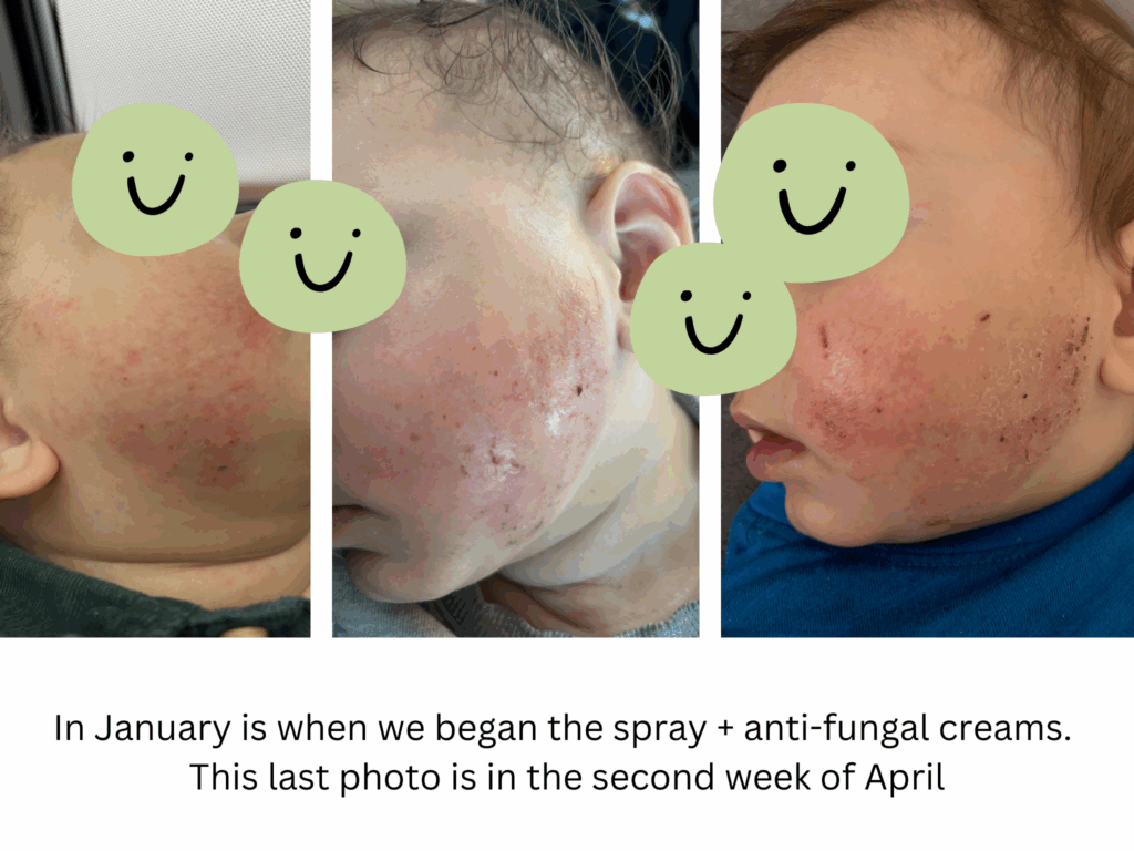 We are already into 2025 and I’m praying for rest and a way to help my son, reading the bible and was figuring out who Jesus is. At night while my babies were asleep, I was reading into forums still and I’m deep into reddit. I read about someone using athletes foot cream for ringworm, itching and jock itch and how he assumes his skin was a fungal eczema and not just eczema and after using the cream it was gone. He suggested to use it for one year because fungus can linger and stay around. It blew my mind. I checked on doordash it was still open thank God and ordered anti-fungal cream (Canesten cream (clotrimazole) and Micatin (Miconazole Nitrate)). I switched from these two creams. I used the hypochlorous acid spray first and then applied the anti-fungal cream started with the clotrimazole one. We started seeing improvements slowly by slowly. Later read about adding baking soda to the bath! I can’t explain the reasoning but it helps with pH balances. So I did salt and sometimes just baking soda baths or combined the two (and still do them now) to keep all my kids skin clear. Also I used an anti-fungal soap bar and still use it now.